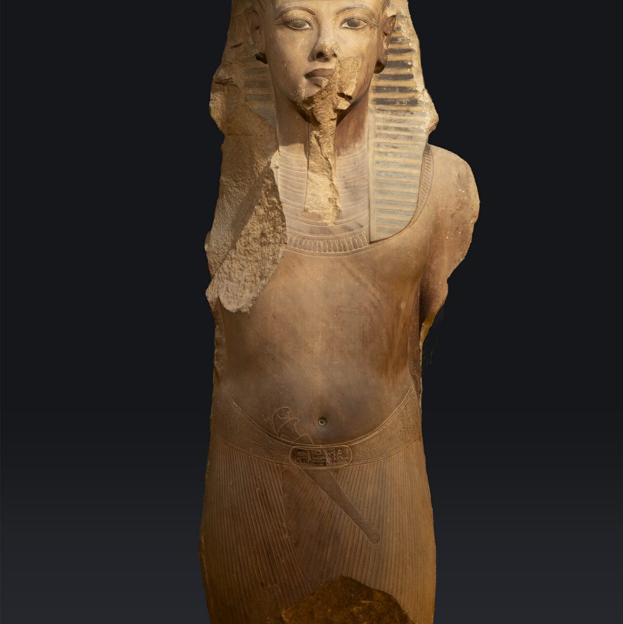 Colossal statue of Tutankhamun (usurped by Ay and Horemheb), 18th Dynasty (1550–1295 BCE) , Quartzite, pigment, Egyptian Museum in Cairo © The Supreme Council of Antiquities of the Arab Republic of Egypt