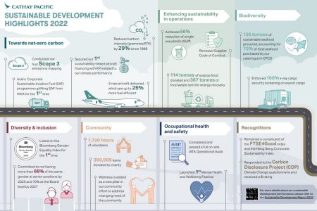 國泰航空自1996年公布環保表現,2006年起推出年度企業社會責任報告,2009年起更首度推出可持續發展報告,進一步提高透明度、問責性及業務整合性。